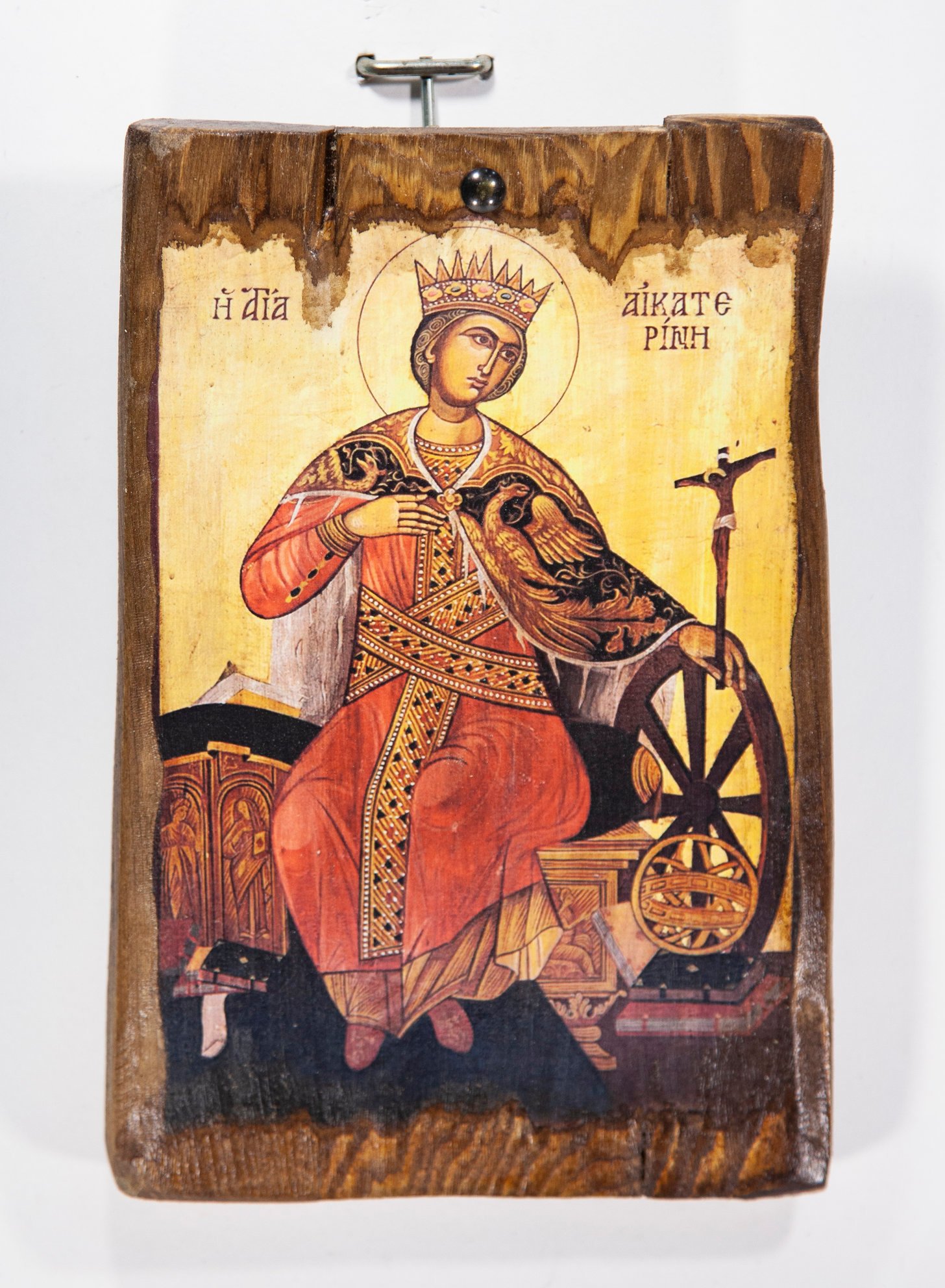 Σκαφτό ξύλο: Εικόνα σε σκαφτό κομμάτι ξύλου με χρύσωση από φύλλα ημίχρυσου.