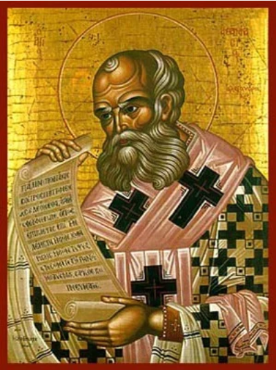Η εικόνα αυτή αποδίδει τη μορφή του Αγίου Αθανασίου του Αθωνίτου με μια αίσθηση βαθιάς παλαιότητας και κατάνυξης. Ο Άγιος απεικονίζεται με αυστηρά αλλά γαλήνια χαρακτηριστικά, έχοντας ψηλό μέτωπο που υποδηλώνει πνευματική διαύγεια και μακριά, γκρίζα γενειάδα που μαρτυρά την πολυετή άσκησή του στο Άγιο Όρος. Φοράει τον μοναχικό μανδύα σε βαθυκόκκινο χρώμα, ο οποίος πλαισιώνει το σώμα του με έντονες πτυχώσεις, προσδίδοντας όγκο και ιεροπρέπεια στη μορφή.