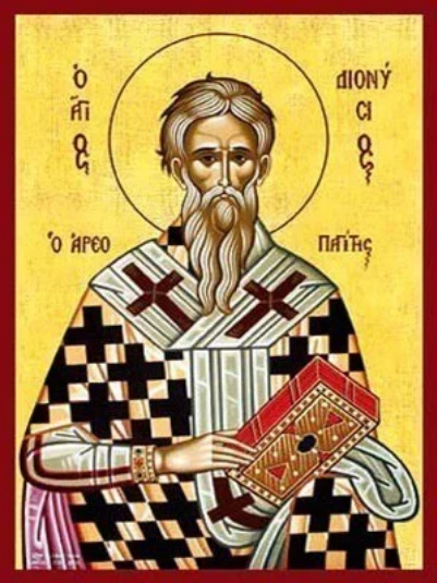 Η εικόνα μας δείχνει τον Άγιο Διονύσιο, με σοφό και ήρεμο βλέμμα, φορώντας παραδοσιακή αγιογραφική στολή. Το πρόσωπό του αποπνέει ειρήνη και πνευματική σοφία, πριν γίνει επίσκοπος Αθηνών υπηρέτησε ως μέλος του Αρείου Πάγου,(Αρεοπαγίτης) της αρχαίας Αθήνας.ενώ τα χέρια του κρατούν συμβολικά αντικείμενα που υποδηλώνουν την ιερατική και ασκητική του ζωή. Το φόντο της εικόνας είναι χρυσό ή γαλάζιο, προσδίδοντας βάθος και φως, ενώ γύρω του διακρίνονται λεπτομέρειες της μονής ή του μοναστηριακού περιβάλλοντος, όπως βιβλία, σταυροί ή λυχνάρια. Η χειροποίητη αγιογραφία έχει έντονες γραμμές και παραδοσιακή βυζαντινή τεχνική, αποτυπώνοντας πιστά την πνευματικότητα του Αγίου. Το σύνολο αποπνέει σεβασμό, ευλάβεια πίστη και ηρεμία, κατάλληλη για προσωπική προσευχή ή συλλογή.
