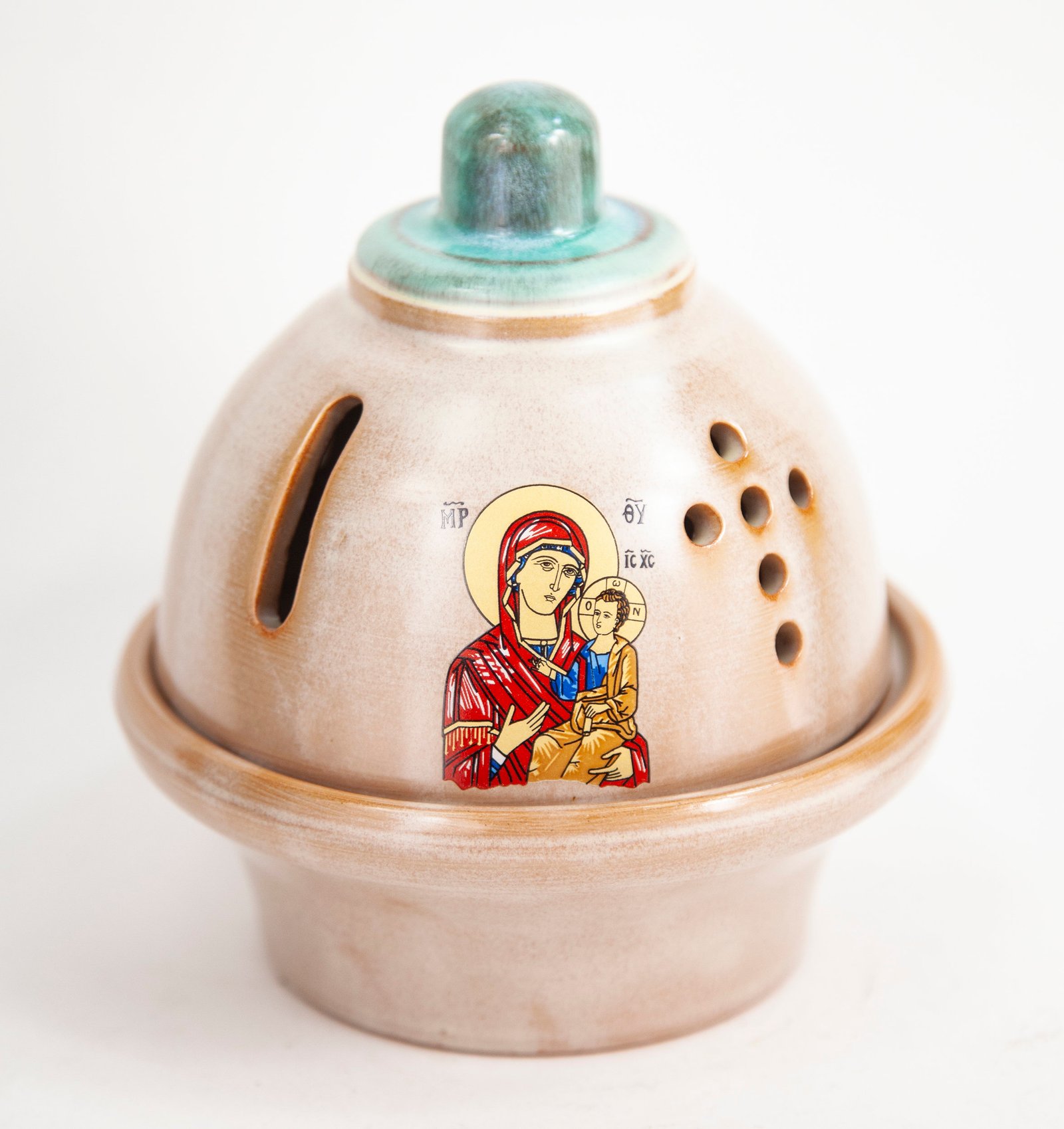 Κεραμικό καντήλι τρούλος με εικόνα της Παναγίας και του Χριστού, για το σπίτι ή το μνήμα