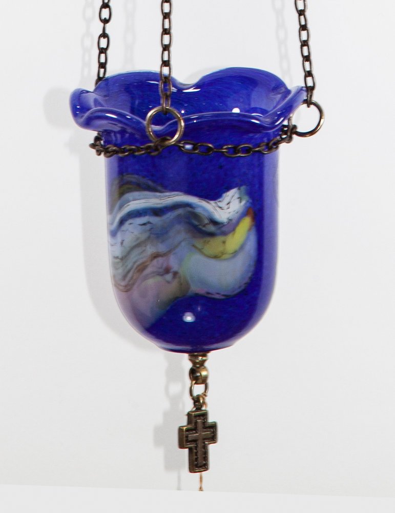 Κρεμαστό καντήλι από φυσητό γυαλί, με αλυσίδα 57εκ
