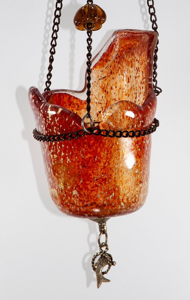 Κρεμαστό καντήλι από χυτό γυαλί, με αλυσίδα 49εκ, σε κεχριμπαρένιο χρώμα