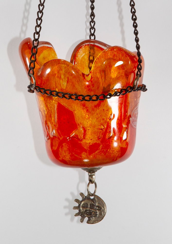 Κρεμαστό καντήλι από χυτό γυαλί, με αλυσίδα 49εκ, σε πορτοκαλί χρώμα