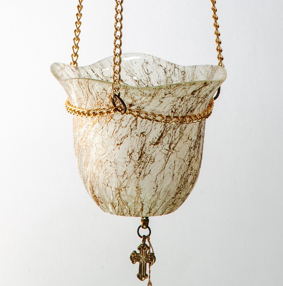 Κρεμαστό καντήλι από οπαλίνα, με αλυσίδα 58εκ και χρυσές λεπτομέρειες