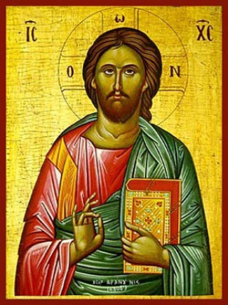 Στο αριστερό Του χέρι κρατά το Ευαγγέλιο κλειστό, το οποίο φέρει περίτεχνη διακόσμηση με πολύτιμους λίθους, υπενθυμίζοντας στον πιστό ότι Εκείνος είναι η πηγή της Αλήθειας. Ο Χριστός φέρει πορφυρό χιτώνα και γαλαζοπράσινο ιμάτιο, χρώματα που συμβολίζουν τη θεία και την ανθρώπινη φύση Του αντίστοιχα. Το πρόσωπό Του αποπνέει μια αυστηρή αλλά ταυτόχρονα φιλάνθρωπη γαλήνη, ενώ το σταυροφόρο φωτοστέφανο με την επιγραφή “Ο ΩΝ” υπογραμμίζει την αιώνια ύπαρξή Του. Η αυστηρή τήρηση των βυζαντινών κανόνων καθιστά το έργο πηγή πνευματικής ανάτασης και κατάνυξης.